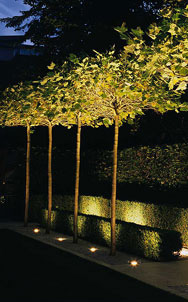 Trees really come to life from up-lighting or spot-lights, and by lighting through your whole garden you can really appreciate all your garden at night. Clever lighting by plants really enhances the foliage and flowers and allows them to be enjoyed beyond sunlight hours.