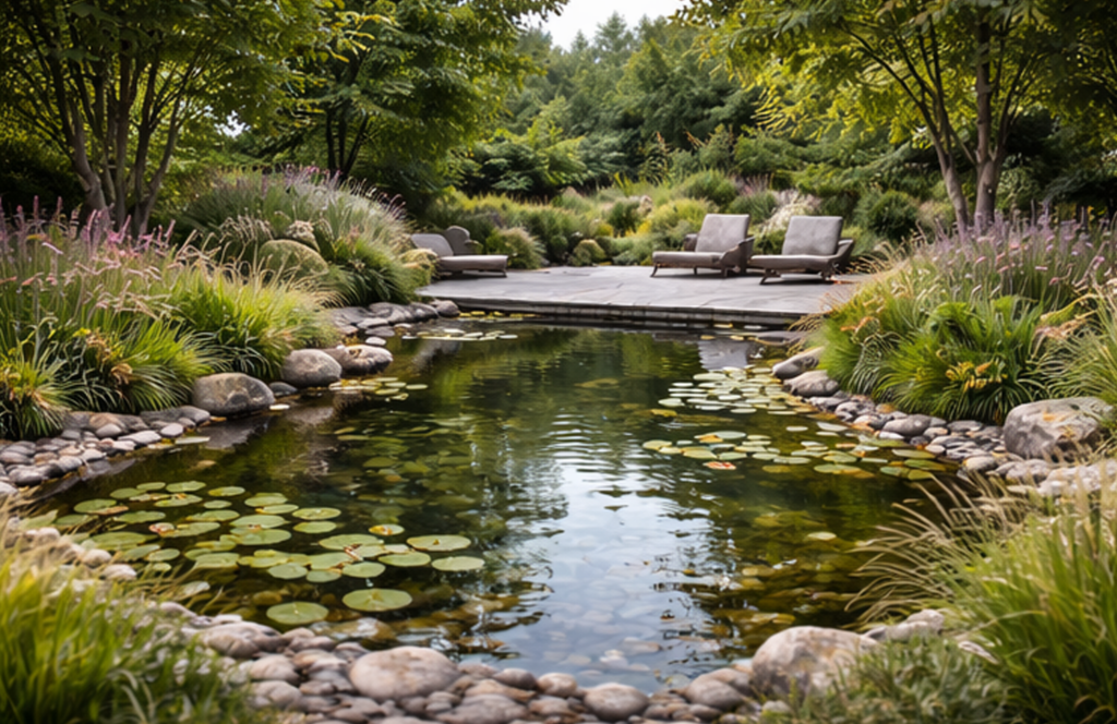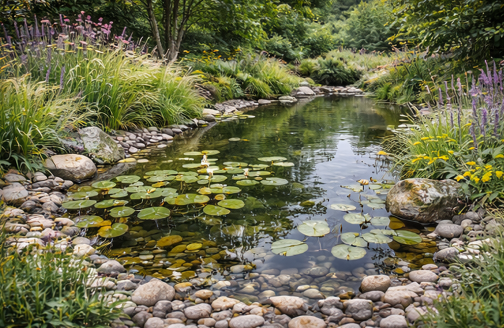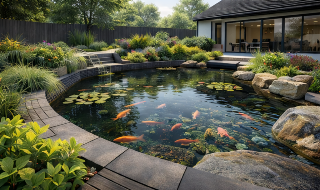 We also integrate features such as waterfalls, streams, planting shelves, and aeration systems to enhance water quality, circulation, and aesthetic appeal. By combining expert craftsmanship with horticultural and ecological knowledge, we ensure your pond not only looks beautiful but also supports plants, fish, and local wildlife.